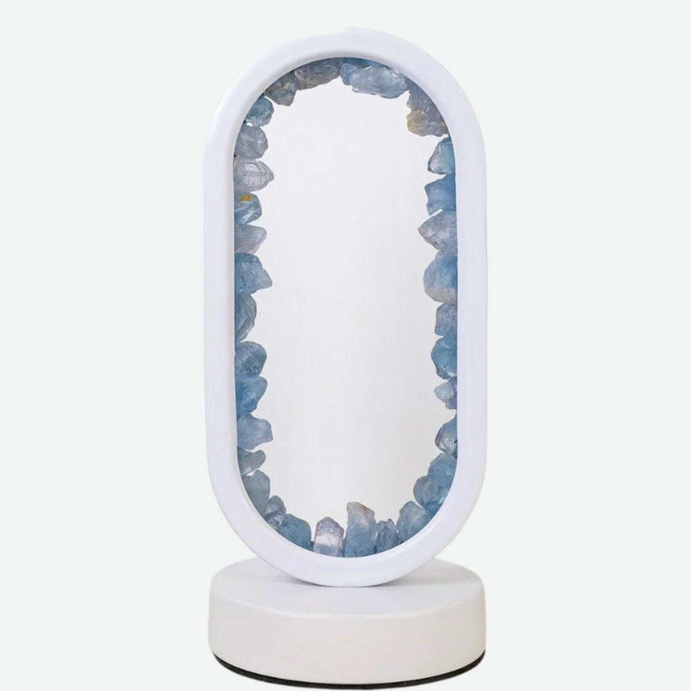 La lámpara AuraStone es más que un simple elemento decorativo: es una pieza de luz escultural impregnada de belleza natural. Con un marco ovalado minimalista y cristales auténticos como amatista o fluorita, esta lámpara emite una luz suave que crea una atmósfera de paz y tranquilidad. Disponible con base negra o blanca y cristales de varios colores, es perfecta para escritorios, mesitas de noche, rincones de meditación o como un regalo original.